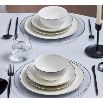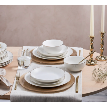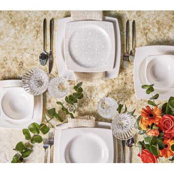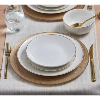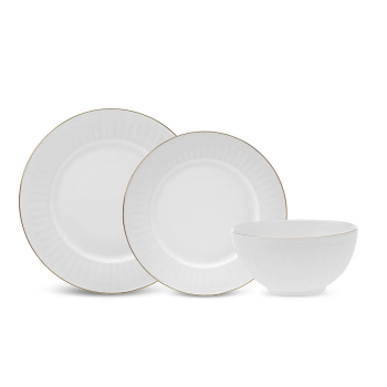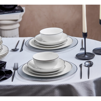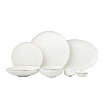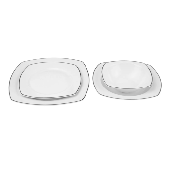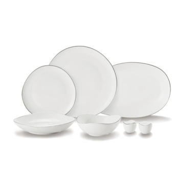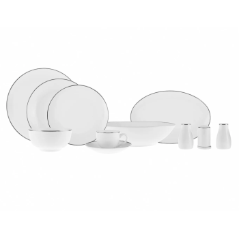 EAN : 8718403012538 Nombre de pièces : 27 Dimensions : 6 x Ø 28 cm 6 x Ø 21 cm 6 x Ø 21 cm 6 x Ø 14 cm 1 x Ø 33 cm Ovale 2 x Salière et poivrière 50 cc Matériau : Porcelaine Couleur : Blanc - Argenté Marque : Bricard