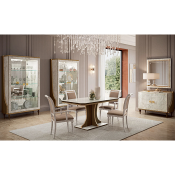 EAN : 8718403012545 Nombre de pièces : 27 Dimensions : 6 x Ø 26,7 cm 6 x Ø 21,0 cm 6 x Ø 20,4 cm 6 x Ø 14,0 cm 1 x Ø 35,5 cm Ovale 2 x Salière et poivrière 50 cc Matériau : Porcelaine Couleur : Blanc - doré Marque : Bricard